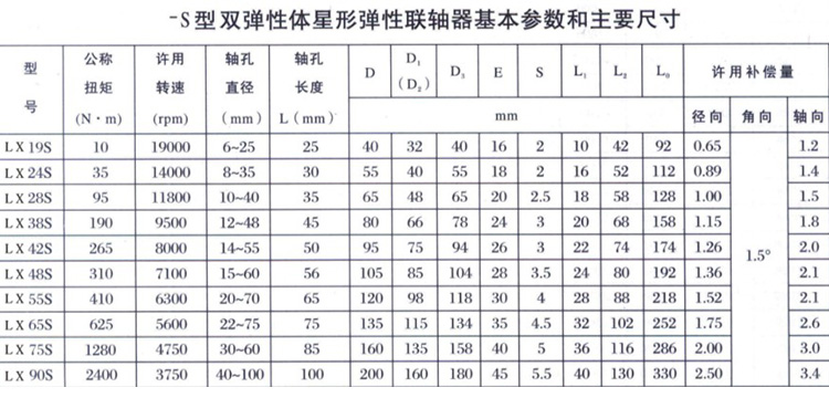 LX-S 型雙彈性體星形彈性聯(lián)軸器